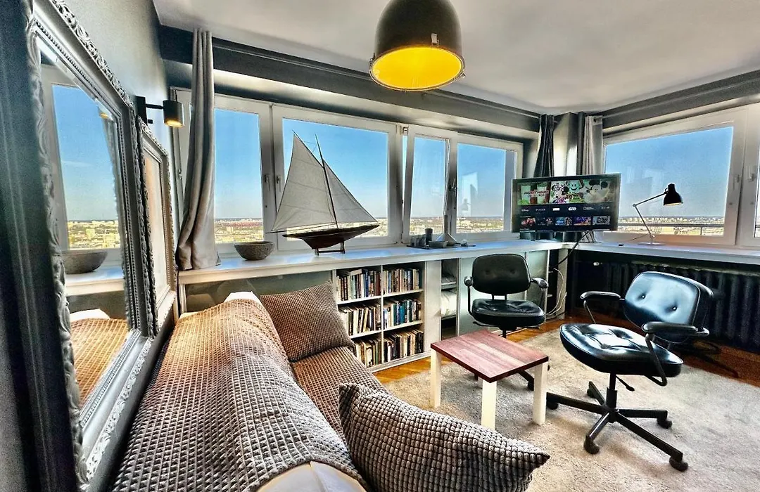 The 1-room Grey Centrum Panorama: Smart Apartment with Fast Wi-Fi Warsaw lies just 1.1 km from the National Museum in Warsaw and within easy reach of Centrum tube station. Guests can make use of public parking offered nearby.